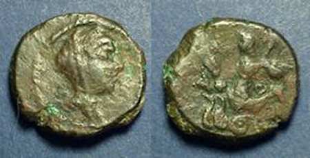 | Kroll 144 | Athens, Attica. 32 BC. AE 20mm (6.11 gm). Laureate head of Zeus / Head of Dionysos wearing ivy wreath. | Text | ![]() |