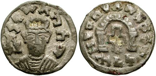 | Munro_126 | Agd, King of Axum. ca AD 500-525. AR 16mm (0.97 g, 12h). “AGD, King of Aksum� in Ge’ez, gilt-crowned facing bust / “The king who exalts the Savior� in Ge’ez, gilt square-armed voided cross within arched distyle canopy. Munro-Hay Type 126i; cf. BMC Aksum 440-445. | Text | Image |