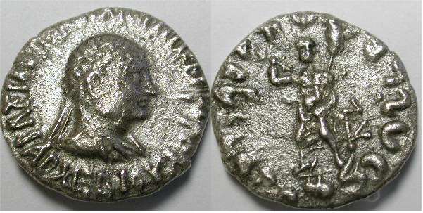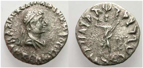 | Bop_03C | Indo-Greek Kings of Baktria, Archebios AR Drachm. BAΣIΛEΩΣ ΔIKIOY NIKHΦOΡOC AΡXEBIOY, diademed draped bust right / Karoshti legend, Zeus standing facing, hurling thunderbolt and holding sceptre. | Text | Image | Text | Image |