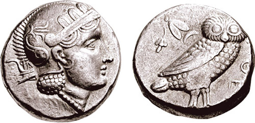 | SNG ANS 9 | Sophytes, Baktria, Pre-Seleukid Era. ca 305-294 BC. AR Hemidrachm. 12mm, 1.79 g. Helmeted head of Athena right / AΘE, (the E resembles an EΡ monogram), owl standing right, head facing; to left, curved back, olive branch in upper left field. Bopearachchi, Sophytes 1A; SNG ANS 9-10. | Text | Image |