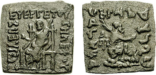 | Bop_3A | Baktria, Telephos Æ Unit. Zeus seated half-left / Male squatting right, holding palm(?); AT monogram to lower left. | Text | Image |
