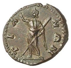RecGen 63 | Marcus Aurelius AE23 of Tium, Bithynia. AD 138-161. 6-83 g. AYΡHΛIOC KAICAΡ, bare-headed, draped bust right. / TIANΩN, Hermes standing left, holding purse and caduceus. RecGen 63; Paris 1640; Mionnet Supp. V, 1532. | Text | Image |