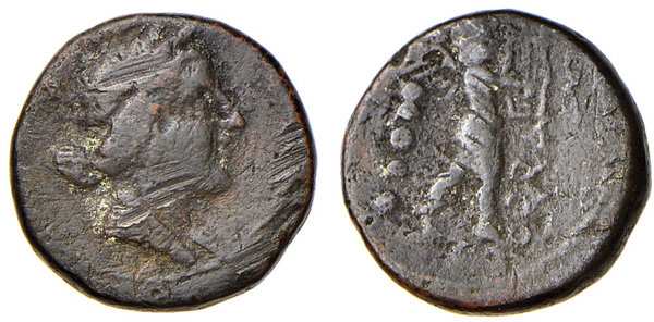 | SNG ANS 823 | Hyria (Orra), Calabria, AE Teruncia (3 uncia), 14 mm, 3.86 g. ca 210-150 BC. Wreathed and draped bust of Aphrodite right. / ORRA and three dots to right of Eros walking right, holding taenia. SNG ANS 823; SNG France 6, 1567; SNG Munich 592-593; SNG Milano 56; HN Italy 794; Carelli Num. Vet. 121, 12. | Text |  |