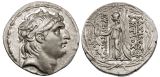 | SNG Is 1855 Antiochos_VII SNGIs 1855 | Cappadocian Kingdom, AR Tetradrachm in the name of Antiochus VII of Syria. Struck under Ariarathes VI or Ariarathes VII before ca 104 BC. Diademed head of Antiochus VII right / BAΣIΛEΩΣ ANTIOCOY EYΡΓETOY, Athena standing left, supporting wreath-bearing Nike left on right hand and resting left on grounded shield, vertical spear in background, ΔI monogram above A to outer right. Houghton 265, Newell 282. | ![]() | |