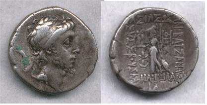 | BMC 21 | Ariobarzanes III, King of Cappadocia, 95-62 BC, AR drachm. Diademed bust right. / Athena standing left, holding small Nike and spear. | Text | Image |