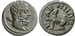 BMC 60 | Tabae, Caria, AE15, semi-autonomous issue, AD 193-268. Bearded head of Herakles left / TABHNΩN, panther sitting left, head turned right. BMC 60; SNG von Aulock 2712; SNG Cop 550; Weber 6585; Walcher 2435; SNG Keckman 271. | Text | Image |