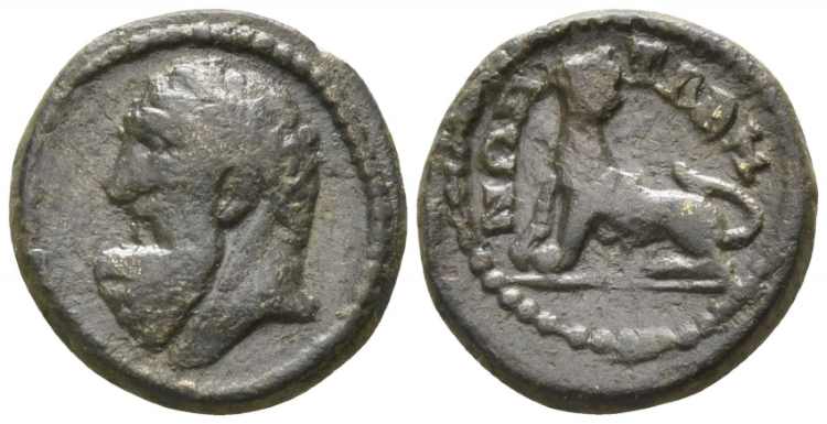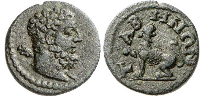 BMC 60 | Tabae, Caria, AE15, semi-autonomous issue, AD 193-268. Bearded head of Herakles left / TABHNΩN, panther sitting left, head turned right. BMC 60; SNG von Aulock 2712; SNG Cop 550; Weber 6585; Walcher 2435; SNG Keckman 271. | Text |  |