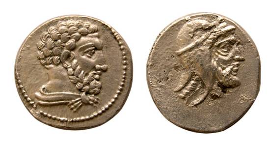 | SNG Lev 153v | Cilicia, Mallos AR Stater. ca 385-333 BC. Bearded head of Herakles right, lion's skin tied around neck / MAL, head of satrap (Tiribazos or Autophradates?) right, wearing Persian headdress. SNG Levante Suppl. 25, SNG France 396, BMC 28, SNG von Aulock 5716v. | Text | Image |