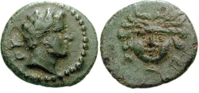 | SNG Lev 172 | Mallos, Cilicia, AE10. 400-350 BC. Head of Pyramos right wearing corn-wreath / MAΛ, Gorgoneion facing. SNG France 406; SNG Levante 172; Lindgren 1540. | Text | Image |