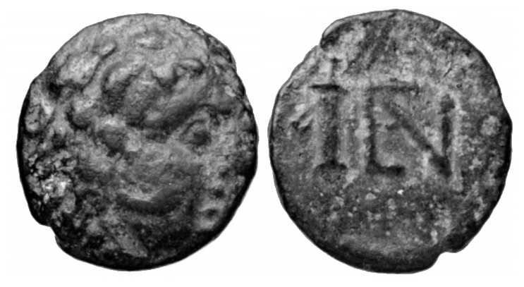| Imhoof MG 50 | Nephelis, Cilicia, AE16, 394–300 BC. 3.05 g. Head of Herakles right, wearing lionskin headdress. / Quiver to left, EN monogram to right. Imhoof Monn. Gr. 50; Svoronos MCI, 7; Svoronos JIAN 1905 8a; Yarkin Enaia 11-12; Berlin 1909503; Tatar Nephelis Series 2 emission 1 in AIIN 66 (2021). | Text | Image |