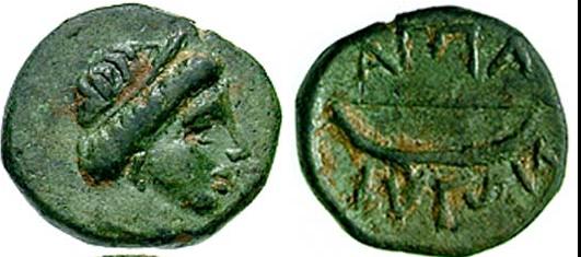 | Svoronos 67 | Crete, Aptera AE14. ca 4th century BC. Diademed head of Artemis right / AΠTA-ΡAIΩN (retrograde), strung bow. SNG Copenhagen 323. | Text | Image |