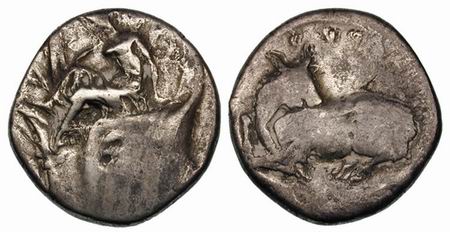 | Svoronos 64 | Gortyna, Crete, AR Stater. After 430 BC. Europa seated right in tree / Bull walking, head reverted. | Text | Image |