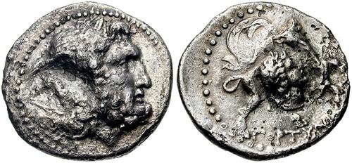 | Svoronos 116 | Gortyna, Crete AR Drachm. Circa 3rd Century BC. Laureate head of Zeus right; c/m of bull right / Europa riding bull right; c/m of head of Artemis right. | Text | Image |