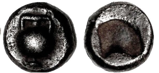 | Babelon 60-03 | Andros, Cyclades and Sporades. AR Obol, 1.09 gr, ca. 550 BC. Amphora / Incuse punch. Babelon 1873, pl. 60,3. | Text | Image |