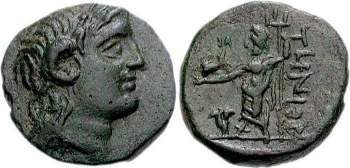 | BMC 31 | Tenos, Cyclades, AE18, ca. 200-188 BC. 4.21 g. Laureate head of Zeus Ammon right / THNIΩN, Poseidon standing left, holding dolphin and trident; rose at lower left. BMC 31-32; Weber 4737 (this coin); SNG Cop 783. | Text | Image |