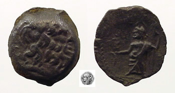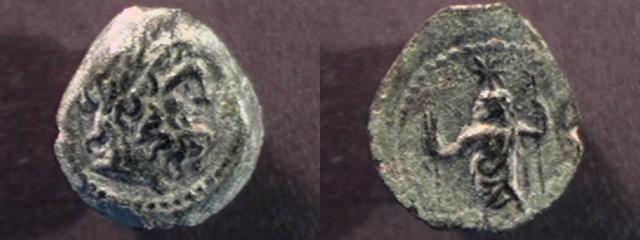 | Cox Curium, 128 | Time of Cleopatra VII, 51-30BC, AE11. Neopaphos Mint, Laureate head of Zeus to right / No legend, Zeus standing with corn ears & sceptre; star above head. Cox, Curium, 128 | Text | Image | |