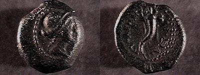 | RPC 4783 | Cleopatra VII AE25 (obol) of Damascus, Syria(obol). Diademed & draped bust right, hair in bun behind / L Γ ΔAMAΣKANIΩN, Tyche seated left holding cornucopia, river god swimming before, head facing. RPC 4781. | Text | Image | |