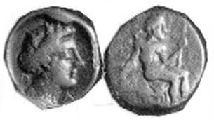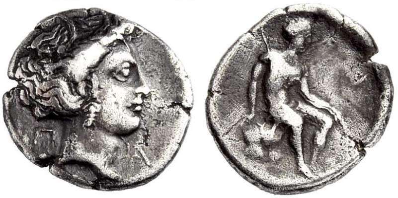 | Sear SG 2936 | Pale, Elis, AR tetrobol, 4th cent. BC, tetrobol. Head of Persephone right / Kephalos seated right, holding spear. Sear Greece 2936. | Text | Image |