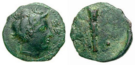 Peloponnesos, Proni on Kephallenia. Before 270 BC. Æ 13mm. Head of the young hero Kephalos right; ΣE before / Club; pellet right.