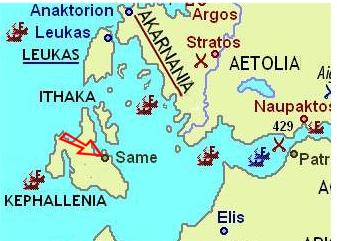 | BMC 43 | Same, Elis, Cephallenia, AE24, ca 350 BC, 5.32 g. Prow of galley right on a human head left / ΣAMA monogram within wreath. BMC 43. | Text | Image |