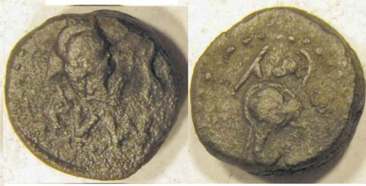 | Feugere PBM 75,14 | Massalia, Gaul, ca. 250-49 BC., AE12-13. 3.25 g. [MAC], helmeted head of Athena or Minerva right / X-[P], winged caduceus. Feugère PBM-75-14; LT 2022 var. | Text | Image |