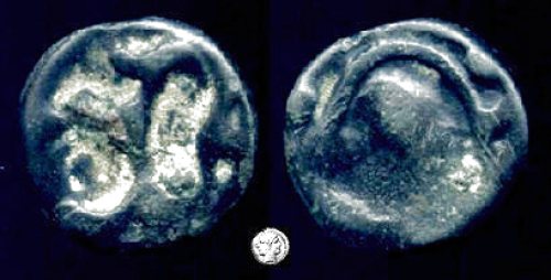 | Sear SG 143 | Celtic Gaul, Senones, Potin 16mm. 1st century BC. Head left / Stylized horse left. Sear SG 143. | Text | Image |