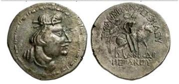 | Cribb_XXIV_17 | Kushan India. Kujula Kadphises, 30-80 AD. AR Indian tetradrachm; 14,80 g. Diademed, draped bust right / King on horseback right, being crowned by Nike. Cribb, The 'Heraeus' Coins vergl. Pl. XXIV, 17. | Text | Image |