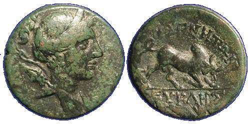 | Mionnet 1136 | Philip II (or I?) AE20 of Magnesia ad Meandrum, Ionia. AD 244-249. M IOYΛ ΦIΛIΠΠOC, laureate cuirassed bust right / MAΓNHTΩN, eagle standing facing, head left, wreath in its beak. | Text | Image |
