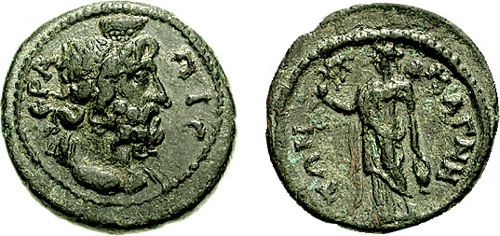 | Mionnet Supp 6 1048 var | Septimius Severus, AE of Magnesia ad Maeandrum, Ionia. Magistrate Eutychion. AD 193-211. AY K Λ CEΠ CEOYHΡOC Π, laureate head right. / EΠI ΓΡ EYTYXIΩNOC Γ MAΓNHTΩN, Demeter standing left by altar, holding grain ears and sceptre or torch. Mionnet Supp. 6, 1048 var (rev. legend). Not in Schulz; SNG Turkey (all vols.); BMC; SNG Cop; SNG vA; usw. but several others known. | Text | Image |