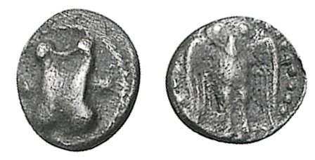 | Heipp-Tamer 80 | Phaselis, Lycia. AR obol. 5th-4th c. BC. 0.96 g. Astragalos between two stars / Φ-A, Owl standing facing, wings spread. C. Heipp-Tamer, 80. | Text | Image |