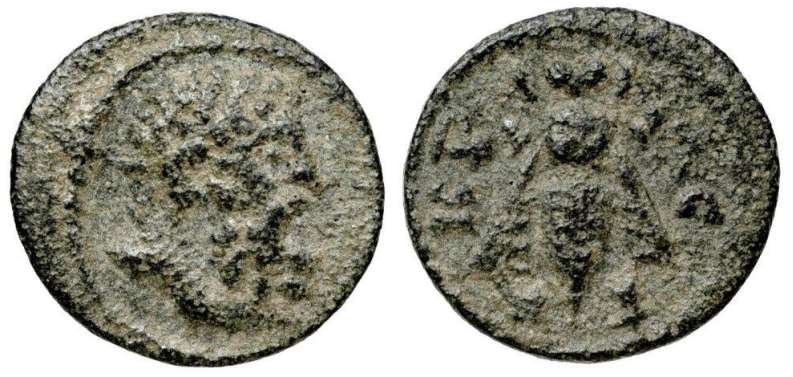| BMC 21 | Septimius Severus, AE25 of Acrasus, Lydia. 193-211. Magistrate Asklepiodorus. AYT KAI CEBHΡOC, laureate head right / AKΡACIΩTΩN ACKΛHΠIOΔΩΡOC, Athena standing left, holding patera and spear, shield at her side. BMC 21; Righetti Coll. Sale IV, 707; GRPC Lydia 38. | Text |  |