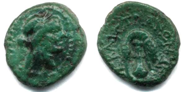 | SNG Munich 201 | Kaystriani, Lydia, autonomous, 2nd-1st century BC. AE 15, 1.98g. Laureate head of Apollo right / KAYCTΡIANΩN, lionskin draped over club. (ΠHTΡ monogram). SNG Munich 201-202; Mionnet 131; GRPC Lydia 9. | Text | Image |