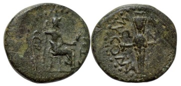 | RPC Supp 1, 2568 | LLivia, AE16 of Mysomacedones, Lydia. AD 14-29. CEBACTH, Livia seated right on throne, holding sceptre and branch / MYCOMAKEΔON-ΩN, cult image of Artemis Ephesia facing. RPC I Supp. 2568.3 (this coin); Leschhorn, Mysomakedones, 56; RPC 2568; Gökyildirim Istanbul 291; Vienna 36903; Plankenhorn 1127(this coin); GRPC Lydia 2(this coin). | Text | Image |