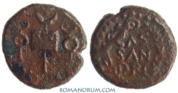 Moushmov 6319 | Septimius Severus AE20 of Cassandreia, Macedonia. (from top right) IMP C L SEP SEP (sic) AV[G], laureate head right / (from lower right), COL IVL AVG CAS, head of Zeus Ammon right. Lindgren 1042. | Text | Image |