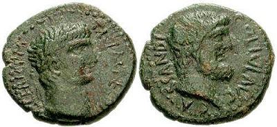 RPC 1517 | Nero AE22 of Macedonia, Cassandrea. NERO CLAVD CAESAR AVG GER P M TR P, radiate head of Nero left / COL IVL AVG CASSANDREN, bearded head of Zeus Ammon left, with ram's horns. SNG ANS 234, Moushmov 6301; Varbanov 3325. | Text | Image |