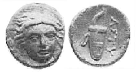 | Klein 253 | Astyra, Mysia, AE unit. struck by the satrap Tissaphernes, 400-395 BC. 1.89 g. TIΣΣA, bare head of Tissaphernes right / AΣTYΡH, Cult image of Artemis Astyra facing, wearing polos and veil. Klein 253. | Text | Image |