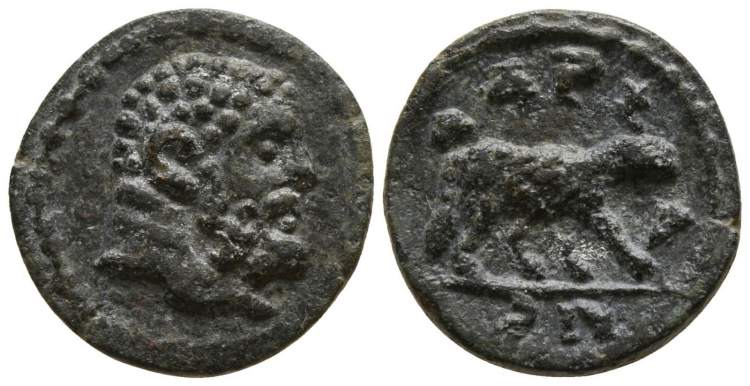 | Fritze 437 | Hadrianeia, Mysia, AE12 semi-autonomous issue. AD 218-235. Head of Herakles right / AΔΡI-A-NE, ram walking right. Fritze Mysien 437 (same dies); Imhoof KM 1; SNG Cop 164-165. | Text | Image |