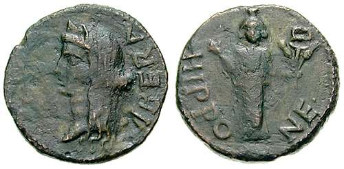 | RPC 710 | Tiberius, AE As or Dupondius of Hippo Regius, Numidia. 11.49 g. Fabius Africanus, proconsul. Struck 6/5 BC. Bare head of Tiberius left / Bare head of Fabius Africanus left. RPC 710; Amandry, Notes II 4.Ib; MAA 120. | Text | Image |