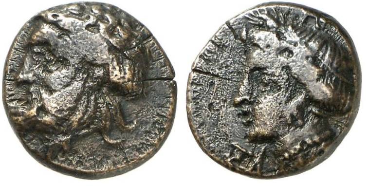 | RecGen 3 | Sesamos, Paphlagonia. AE, 340-330 BC. 3.33 g. Laureate head of Zeus left / ΣH-ΣA, wreathed head of Demeter left, wearing earring and necklace; A before head. RecGen 3; Hoover HGC 379; SNG vA 195; Imhoof 19 in NZ VII. | Text | Image |