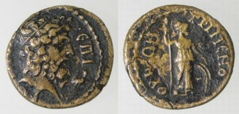 | BMC 4 | Grimenothyrae, Phrygia, AE18, 3.9 gr, pseudo-autonomous issue, 97-138 AD. EΠI Λ TYΛ, Bearded head of Zeus right, wearing taenia / ΓΡIMENOΘYΡEΩN, Athena standing right, holding spear and shield. SNG von Aulock 3599; Waddington 6050; SNG Cop 400; Lindgren I 954: BMC 4. | Text | Image |