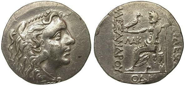 | Price 1192 | Alexander III AR Tetradrachm. Odessos mint, ca 80-70 BC. Head of Herakles right in lionskin, with the features of Mithradates VI of Pontos / BAΣIΛEΩΣ AΛEXANΔΡOY of Zeus seated left with eagle and sceptre; LAK left, OΔH in ex. | Text | Image | |