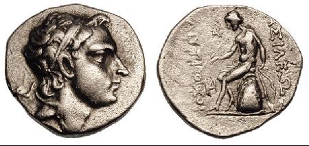 Houghton 1193v | Antiochus III AR Drachm. Ekbatana mint. Dademed head right / BAΣIΛEΩΣ ANTIOXOY, Apollo seated left on omphalos, A over monogram to right. | Text | Image |