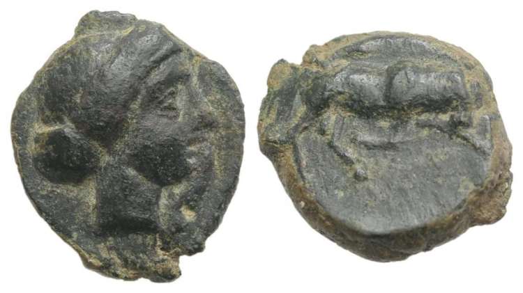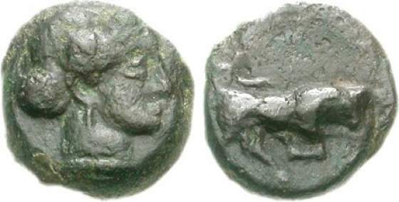 | Calciati 1 (2) | Kimissa, Sicily, Mercenaries. AE12, 317–305 BC. 2.65 g. Female head right, hair in a bun. / Bull butting right. No symbols or monograms. Calciati III, 1; Hoover HGC 658. | Text | Image |