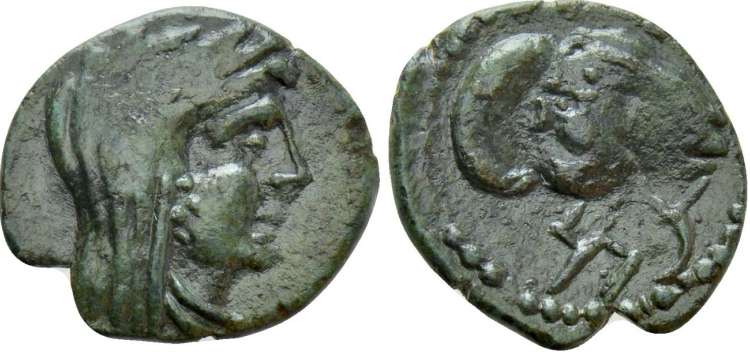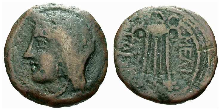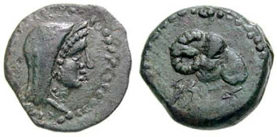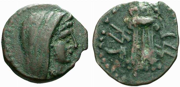 | Sear 6586 | Melita (Malta), AE18. c 250 BC. Veiled bust right / Ram's head right. Calciati III 4; SNG Cop 460 (North Africa); SNG Morcom 937; Laffaille 270; Virzi 2131ff. | Text | Image |