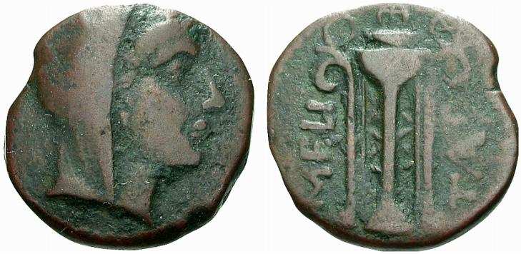 | Calciati 10 | Sicily, Melita (Malta), AE20. Veiled head of female left / MEΛITAIΩN, stylized tripod. Calciati 10, Azzopardi 123; SNG Cop. 467; Lindgren I 663. | Text | Image |