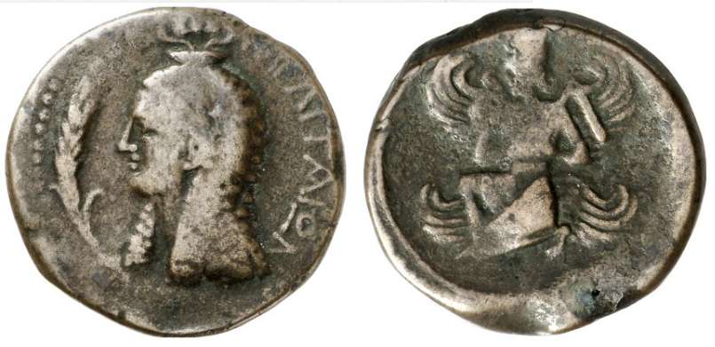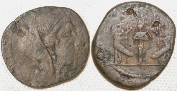 | RPC 672 | Islands off Sicily, Melita (Malta). Circa 36 BC. AE 20mm. Veiled & diademed head of female left / C ARRUNTANUS BALB PRO PR, curule chair. Calciati III pg. 356, 14. | Text | Image |