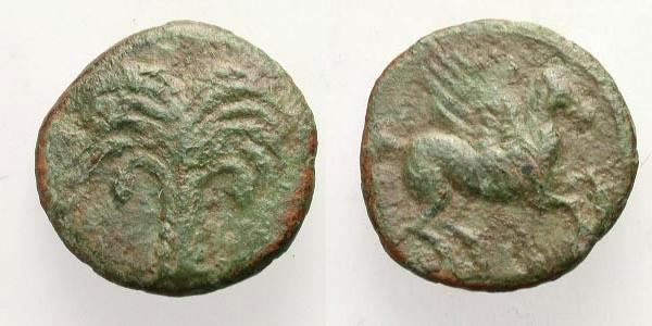 | SNG Cop 1018 | Siculo-Punic AE16. 4th-3rd century BC. Palm tree / Pegasos flying left.