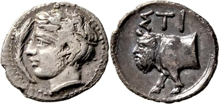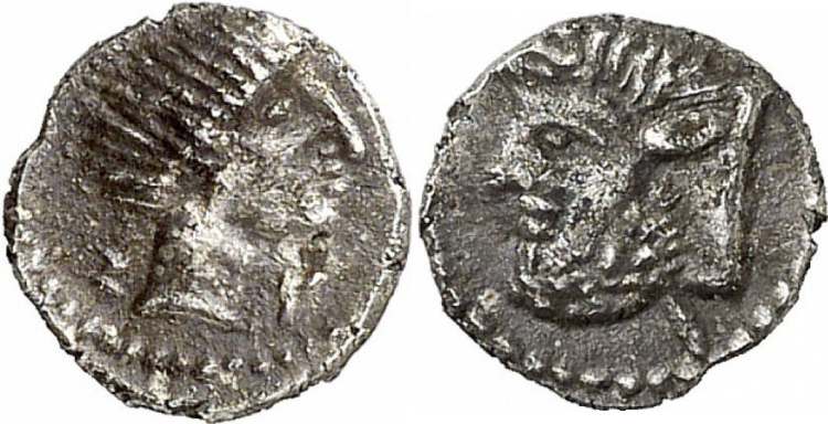 | GM 181, 1150 | Stiela (?), Sicily, AR obol, 5th c. BC, 0.59 g. Σ-T, Archaic bearded male head right / Head of man-headed bull left. Apparently unpublished. Gorny & Mosch 181, 1150. | Text | Image |