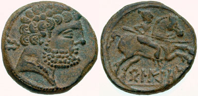 | Burgos 166 | SPAIN, Beligiom. Early First Century BC. AE As (7.99 gm). Male head right; letter behind / Horseman right, carrying lance. Villaronga 4. | Text | Image | |