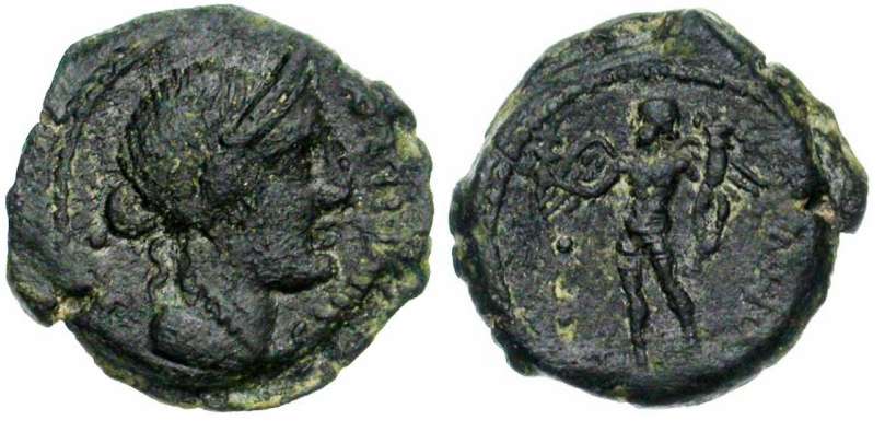 | SNGCop 462 | AE17 Quadrans of Spain, Corduba. 2nd Century BC. CN IVLI L FQ, Draped bust of Venus right / CORDVBA to right of Eros standing left, holding torch and cornucopiae; three pellets before. Burgos 1558; SNG Cop. 462-463; Heiss 1. | Text Text | Image Image |